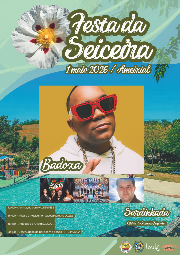 Aproveite o feriado do Dia do Trabalhador, no 1º de maio, para vir passear até ao coração da serra do caldeirão e participar numa das maiores festas populares da região – a Festa da Seiceira – e deliciar-se com a saborosa sardinhada oferecida pela Junta de Freguesia de Ameixial, visitar os vários stands com produtos regionais, aproveitar um mergulho no Espelho de Água do Ameixial e dar um pézinho de dança na Festa da Seiceira, este ano com a atuação do artista Badoxa no palco principal.